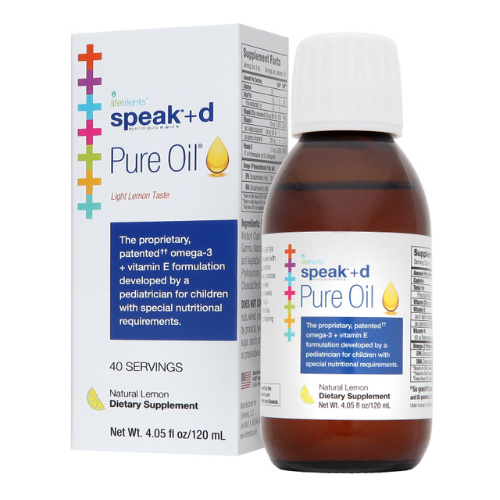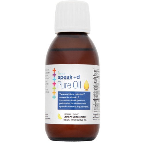특별한 영양 요구 사항이 있는 어린이의 식이 요구를 지원하기 위해 초정제 오메가-3로 소아과 의사가 제조한 독점적인 speak+d 순수 오일 1병.