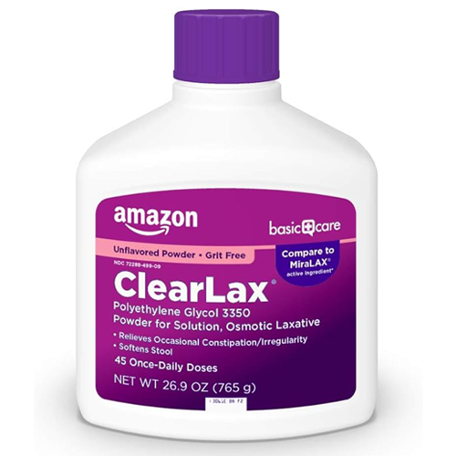 Amazon Basic Care ClearLax Polyethylene Glycol 3350 Powder for Solution은 가끔씩 나타나는 변비나 불규칙한 배변을 완화하는데